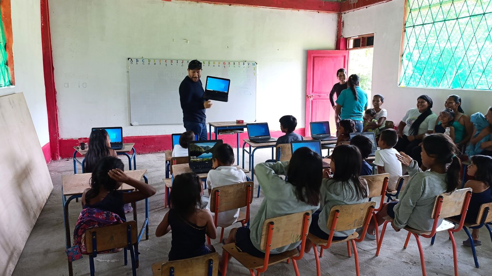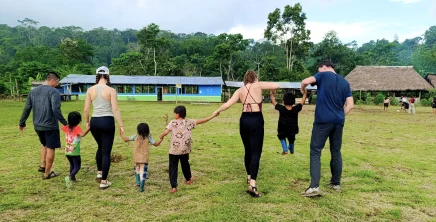 Children reading at the Arajuno Glamping