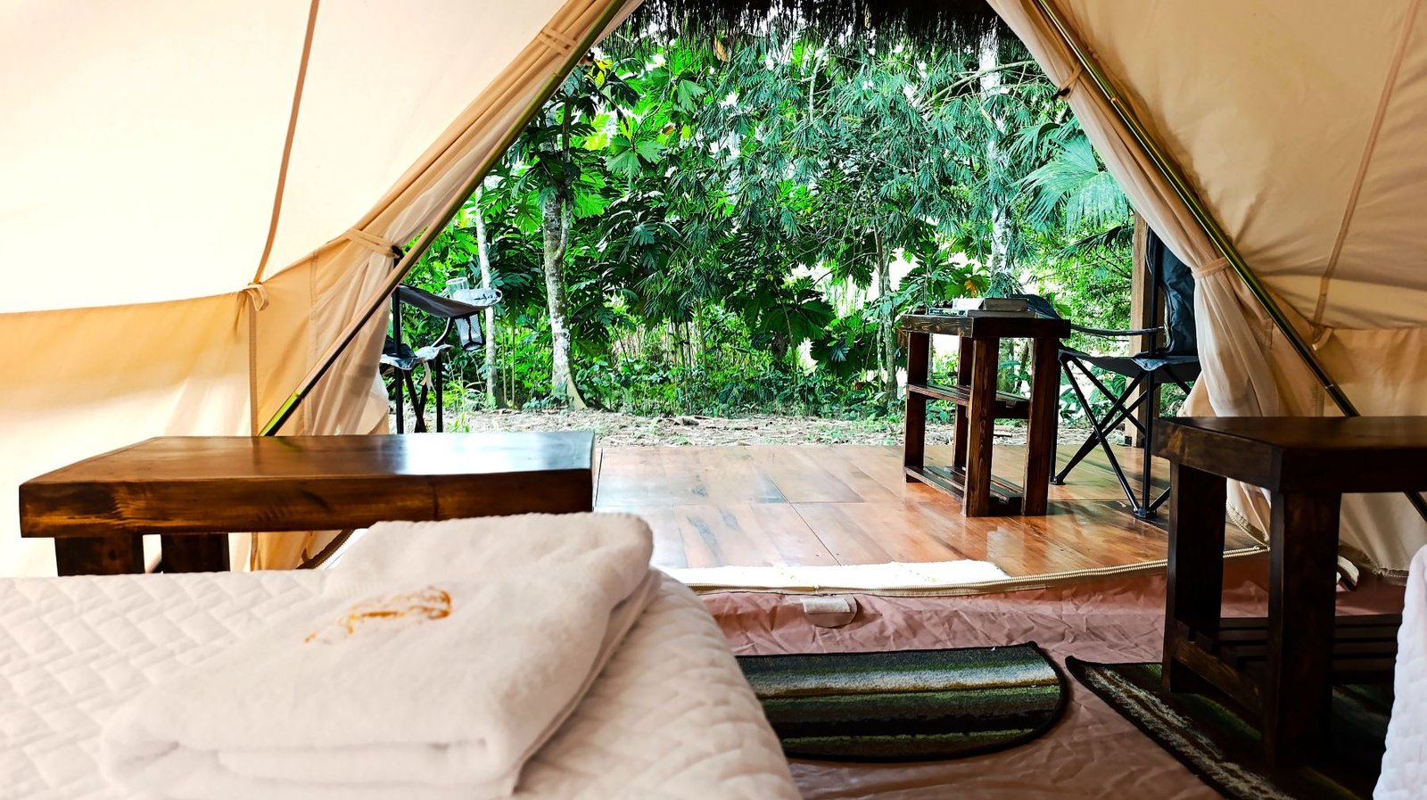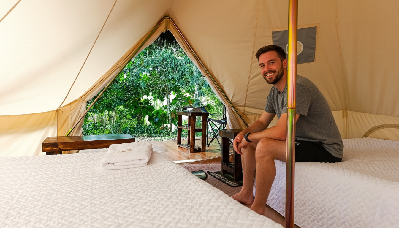 Guest resting inside the Tent of Arajuno Glamping